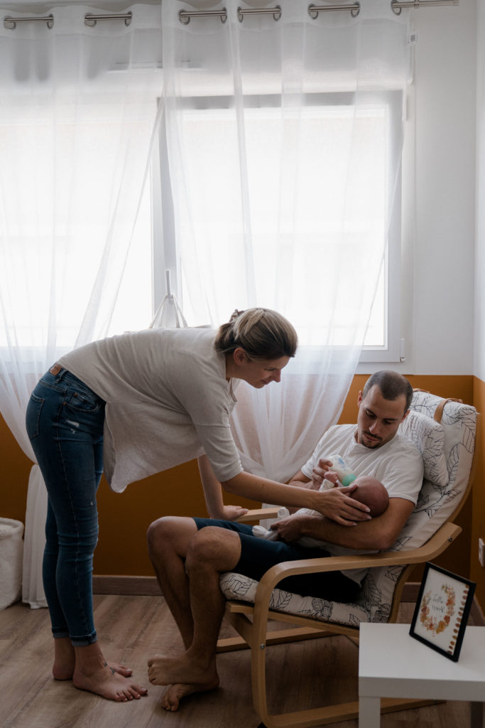 Séance naissance à domicile, chez vous dans votre univers pour un bain, une lecture, un câlin, un gâteau … Une séance qui vous ressemble.